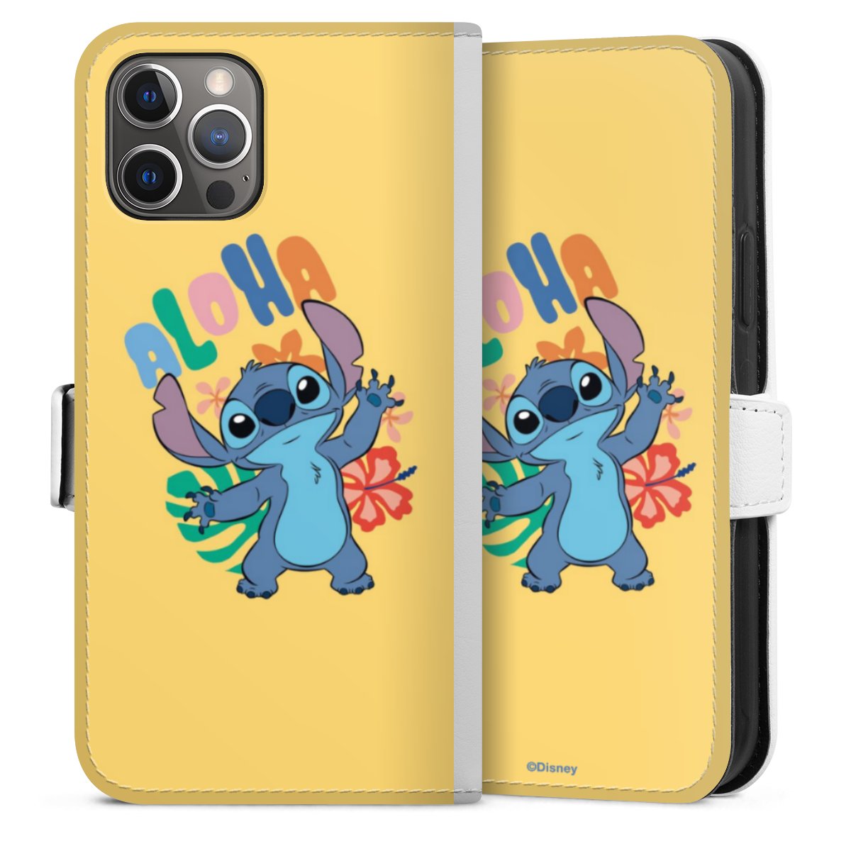 For our Sideflip Case we are using our advanced direct printing technology. The back and frontside are fully printabale, the inside of the phone bag is left unprinted. You can order the phone case without print, printed completely or also with a partial print.