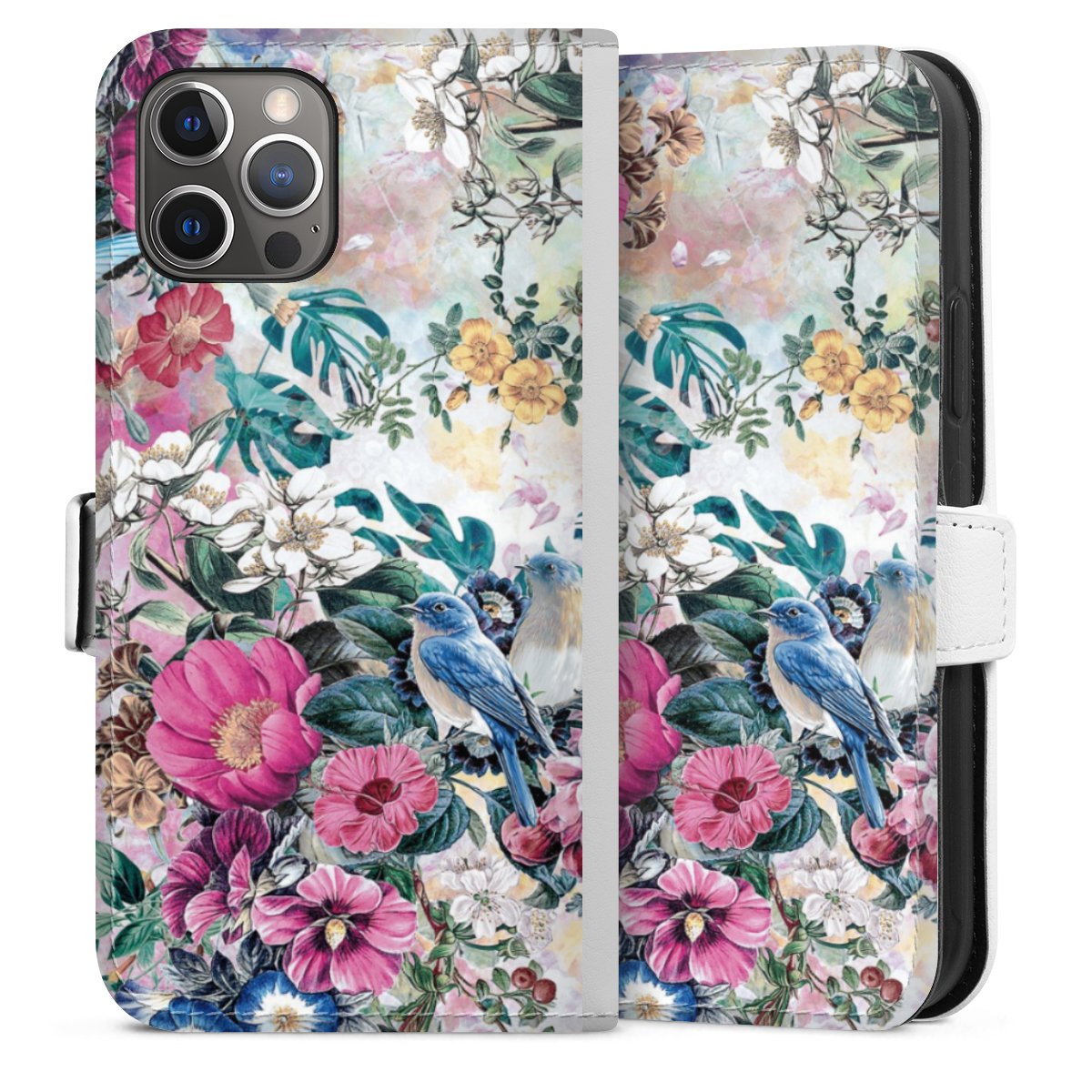 For our Sideflip Case we are using our advanced direct printing technology. The back and frontside are fully printabale, the inside of the phone bag is left unprinted. You can order the phone case without print, printed completely or also with a partial print.