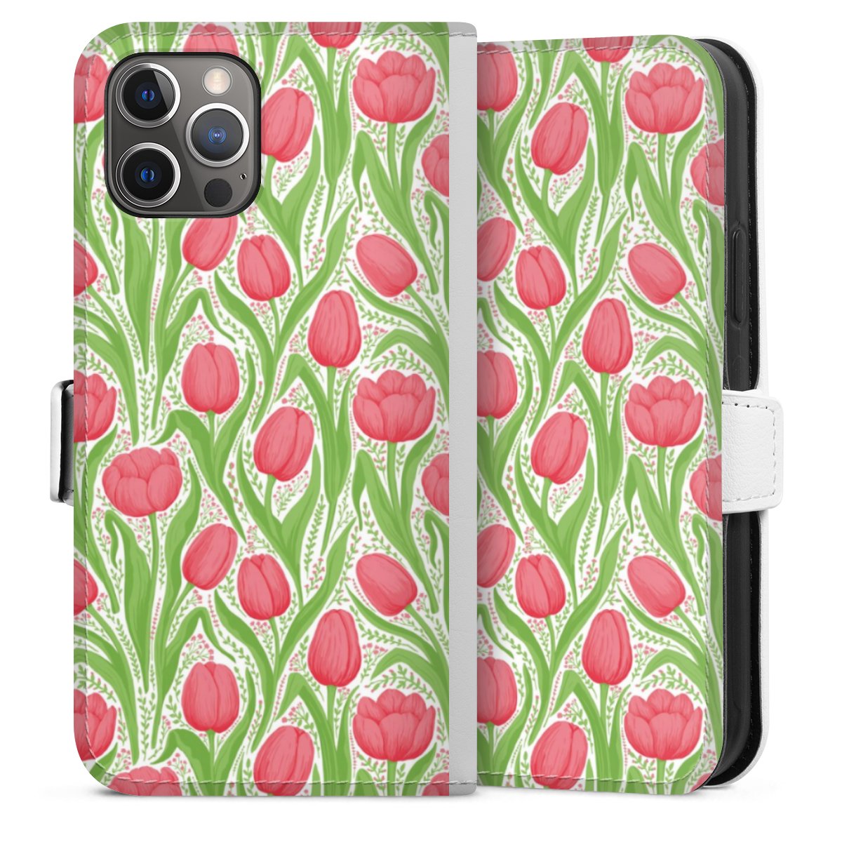For our Sideflip Case we are using our advanced direct printing technology. The back and frontside are fully printabale, the inside of the phone bag is left unprinted. You can order the phone case without print, printed completely or also with a partial print.