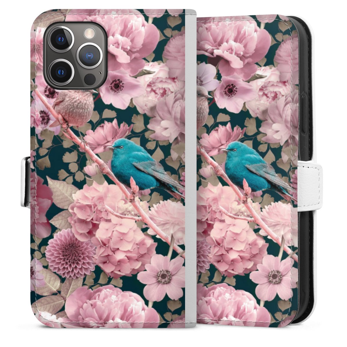 For our Sideflip Case we are using our advanced direct printing technology. The back and frontside are fully printabale, the inside of the phone bag is left unprinted. You can order the phone case without print, printed completely or also with a partial print.