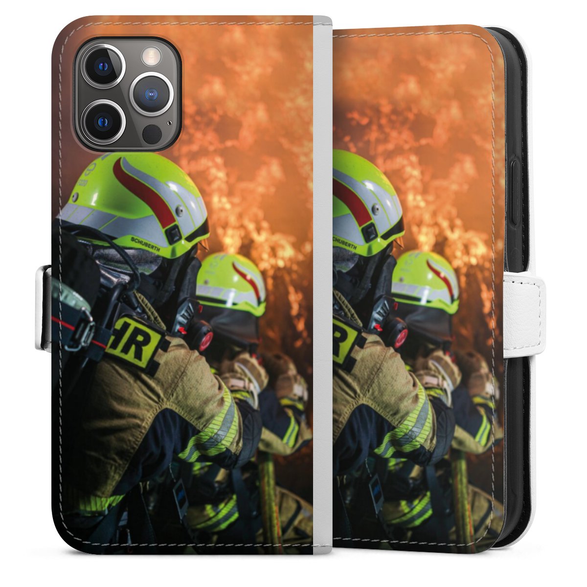 For our Sideflip Case we are using our advanced direct printing technology. The back and frontside are fully printabale, the inside of the phone bag is left unprinted. You can order the phone case without print, printed completely or also with a partial print.
