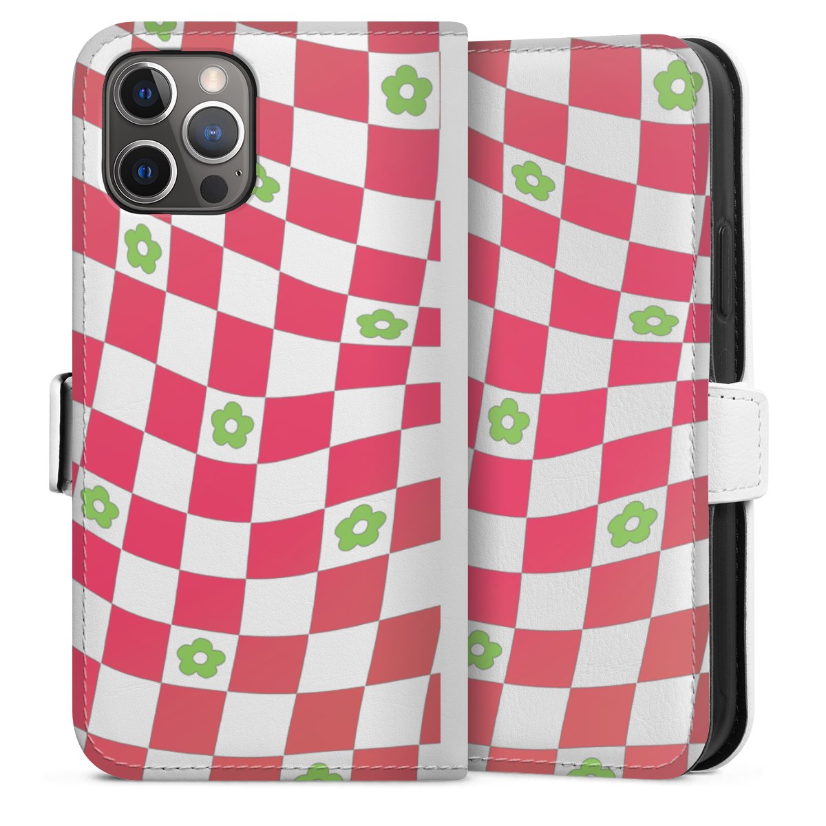 For our Sideflip Case we are using our advanced direct printing technology. The back and frontside are fully printabale, the inside of the phone bag is left unprinted. You can order the phone case without print, printed completely or also with a partial print.
