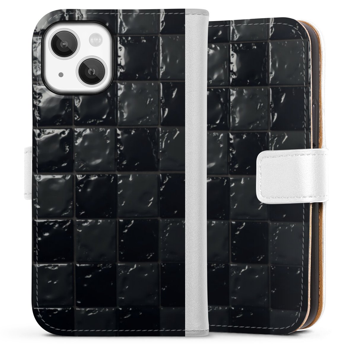 For our Sideflip Case we are using our advanced direct printing technology. The back and frontside are fully printabale, the inside of the phone bag is left unprinted. You can order the phone case without print, printed completely or also with a partial print.