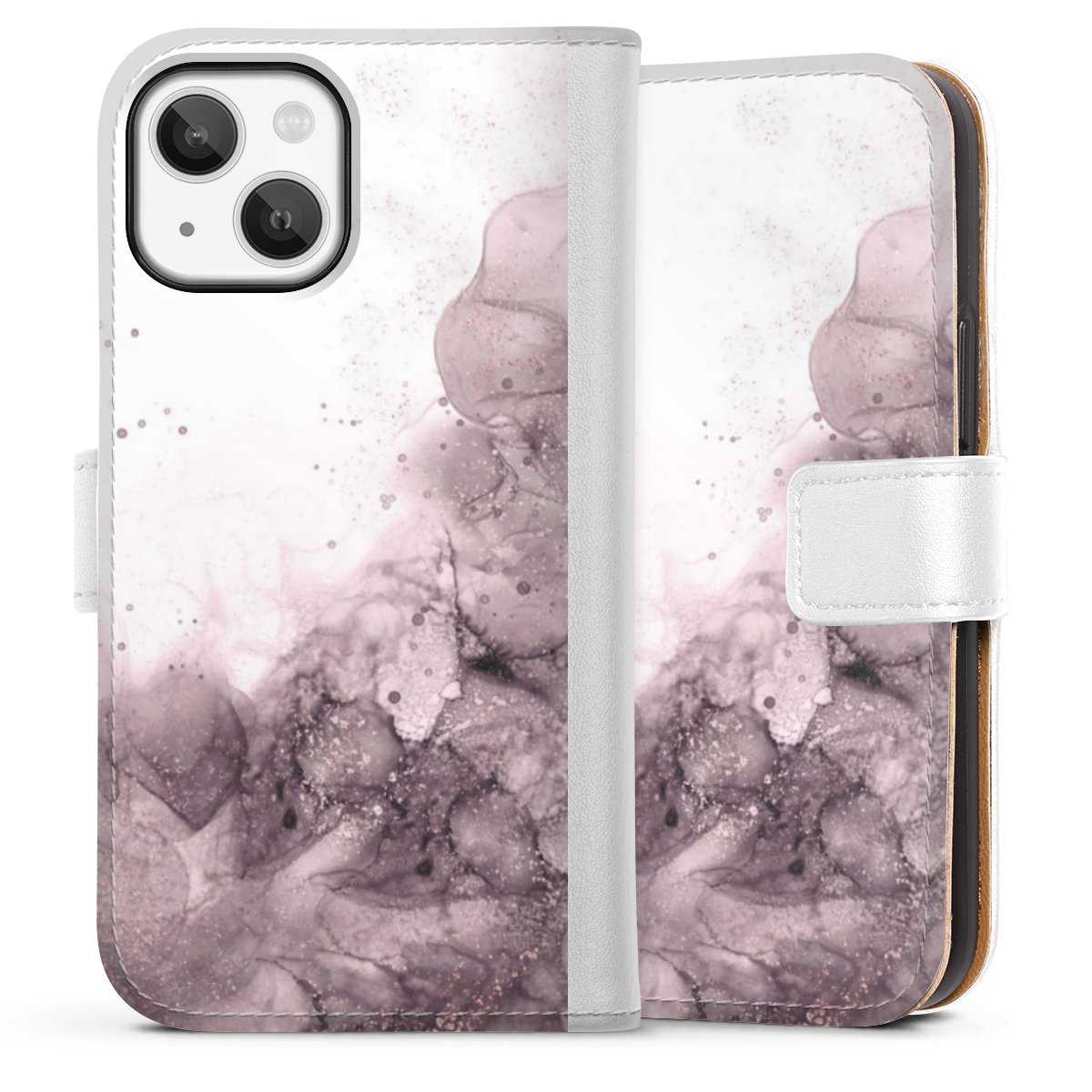For our Sideflip Case we are using our advanced direct printing technology. The back and frontside are fully printabale, the inside of the phone bag is left unprinted. You can order the phone case without print, printed completely or also with a partial print.