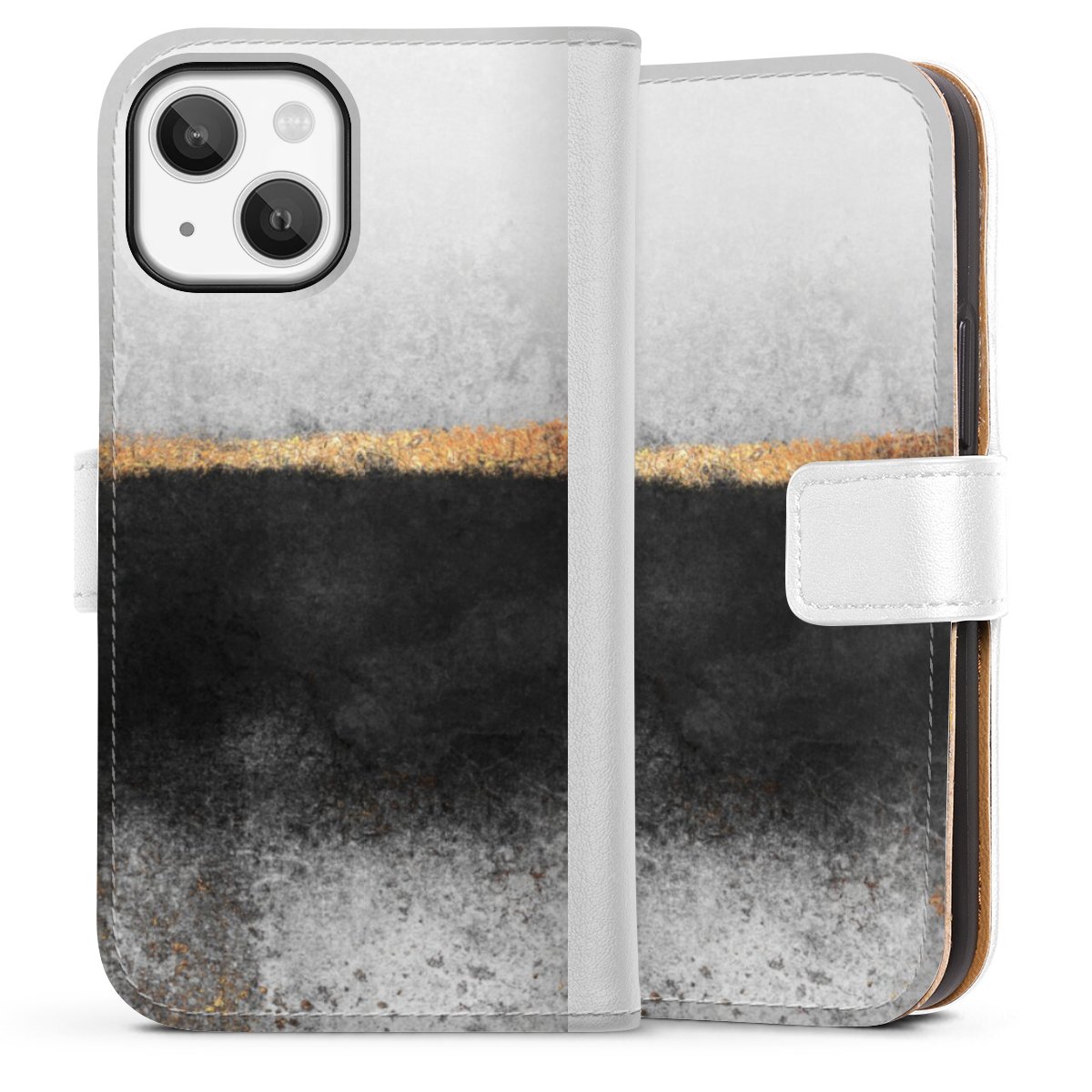 For our Sideflip Case we are using our advanced direct printing technology. The back and frontside are fully printabale, the inside of the phone bag is left unprinted. You can order the phone case without print, printed completely or also with a partial print.