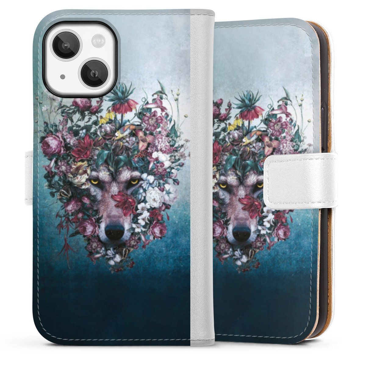 For our Sideflip Case we are using our advanced direct printing technology. The back and frontside are fully printabale, the inside of the phone bag is left unprinted. You can order the phone case without print, printed completely or also with a partial print.