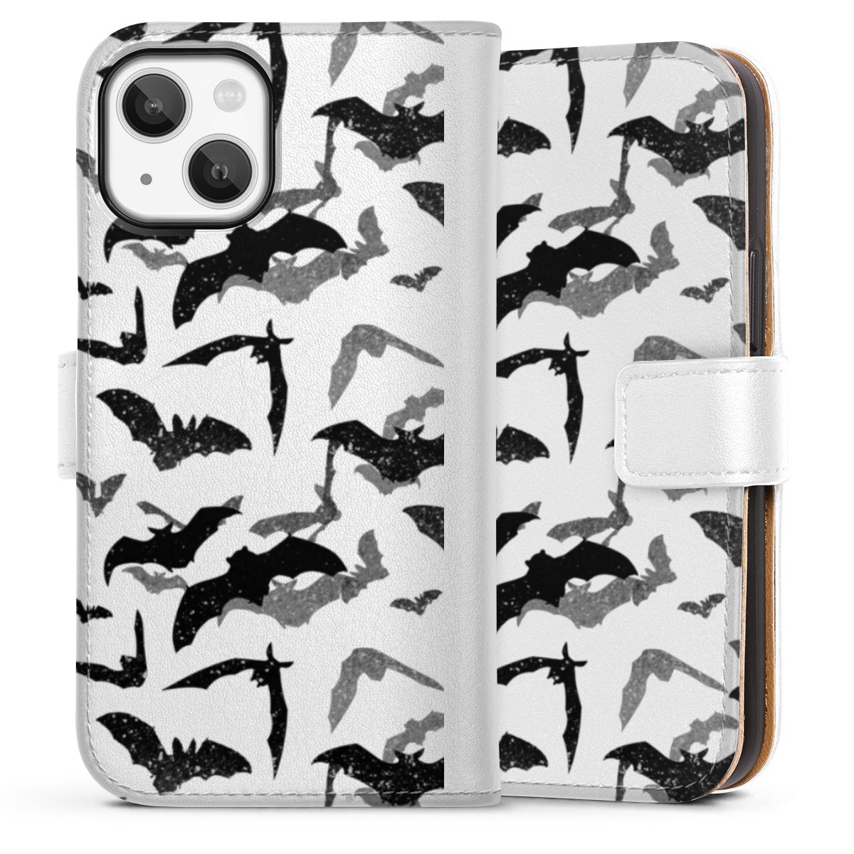 For our Sideflip Case we are using our advanced direct printing technology. The back and frontside are fully printabale, the inside of the phone bag is left unprinted. You can order the phone case without print, printed completely or also with a partial print.