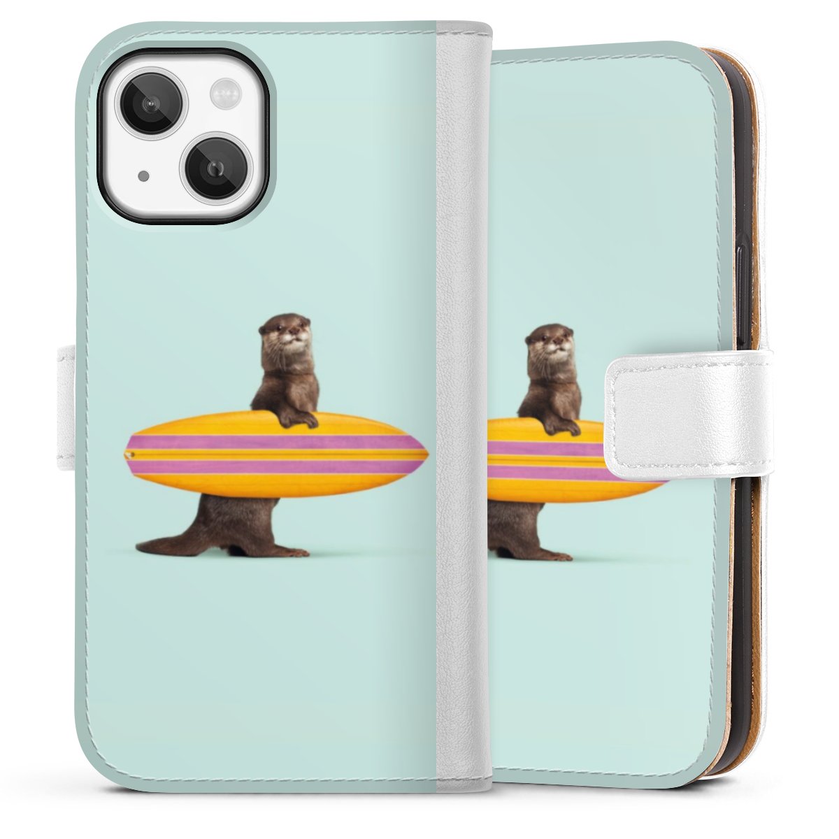 For our Sideflip Case we are using our advanced direct printing technology. The back and frontside are fully printabale, the inside of the phone bag is left unprinted. You can order the phone case without print, printed completely or also with a partial print.