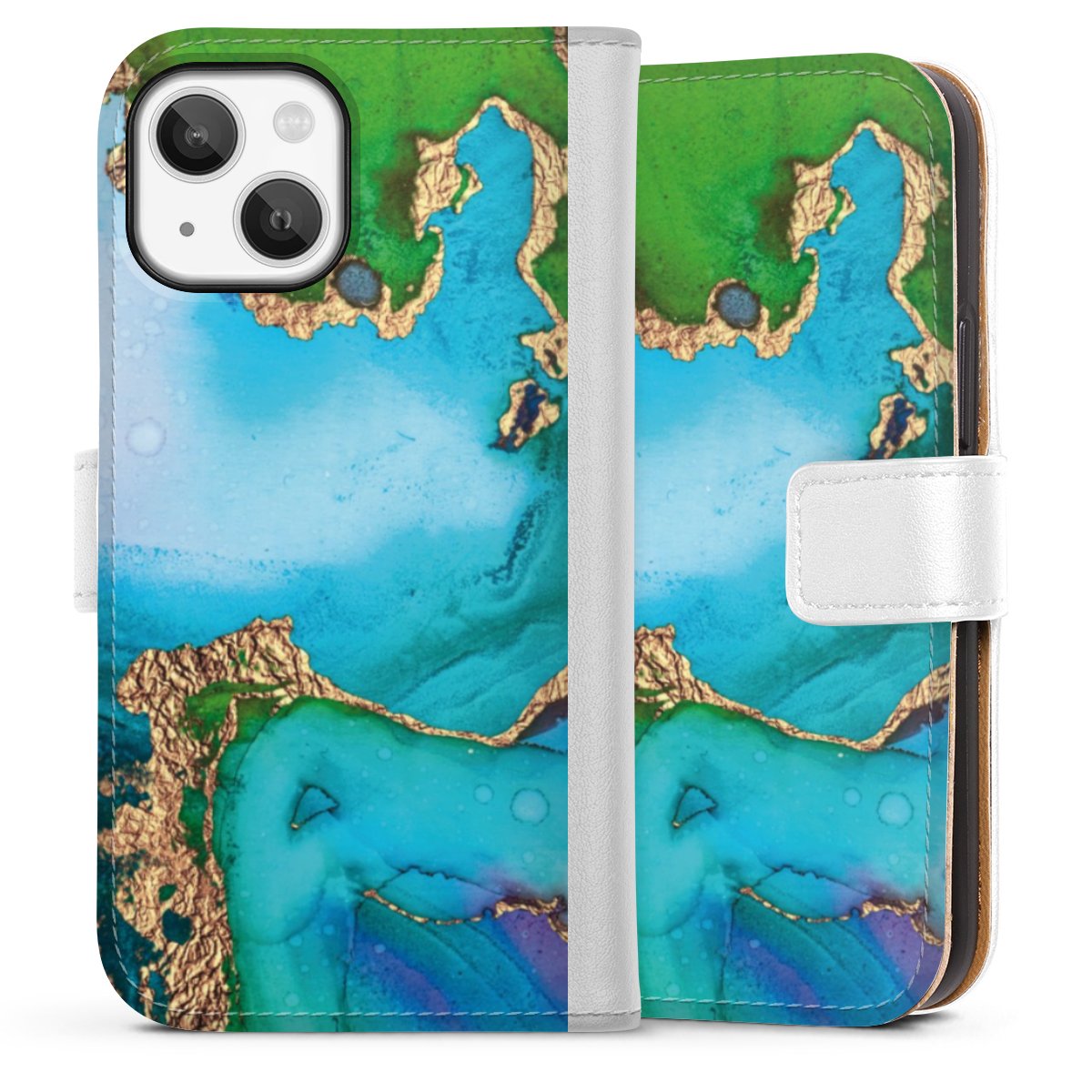 For our Sideflip Case we are using our advanced direct printing technology. The back and frontside are fully printabale, the inside of the phone bag is left unprinted. You can order the phone case without print, printed completely or also with a partial print.