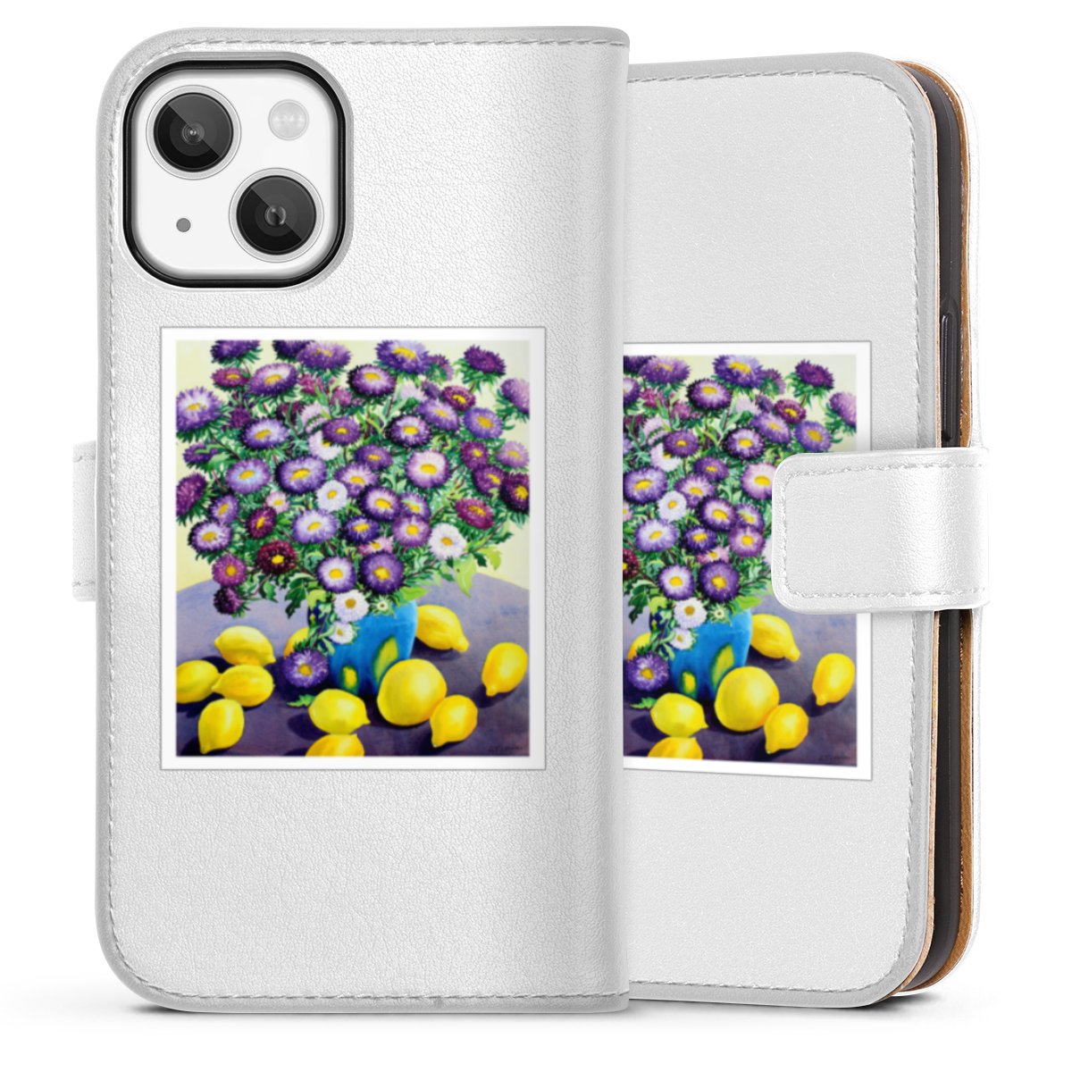 For our Sideflip Case we are using our advanced direct printing technology. The back and frontside are fully printabale, the inside of the phone bag is left unprinted. You can order the phone case without print, printed completely or also with a partial print.