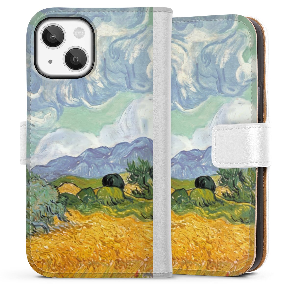 For our Sideflip Case we are using our advanced direct printing technology. The back and frontside are fully printabale, the inside of the phone bag is left unprinted. You can order the phone case without print, printed completely or also with a partial print.