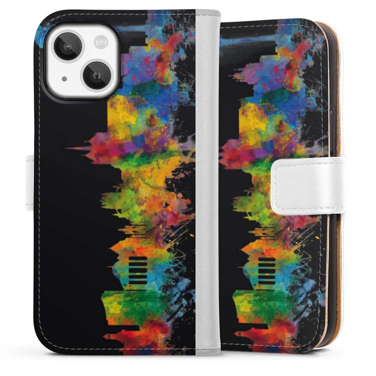 For our Sideflip Case we are using our advanced direct printing technology. The back and frontside are fully printabale, the inside of the phone bag is left unprinted. You can order the phone case without print, printed completely or also with a partial print.
