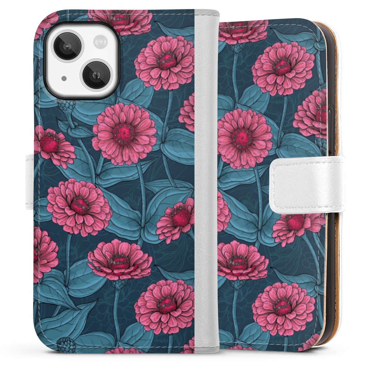 For our Sideflip Case we are using our advanced direct printing technology. The back and frontside are fully printabale, the inside of the phone bag is left unprinted. You can order the phone case without print, printed completely or also with a partial print.
