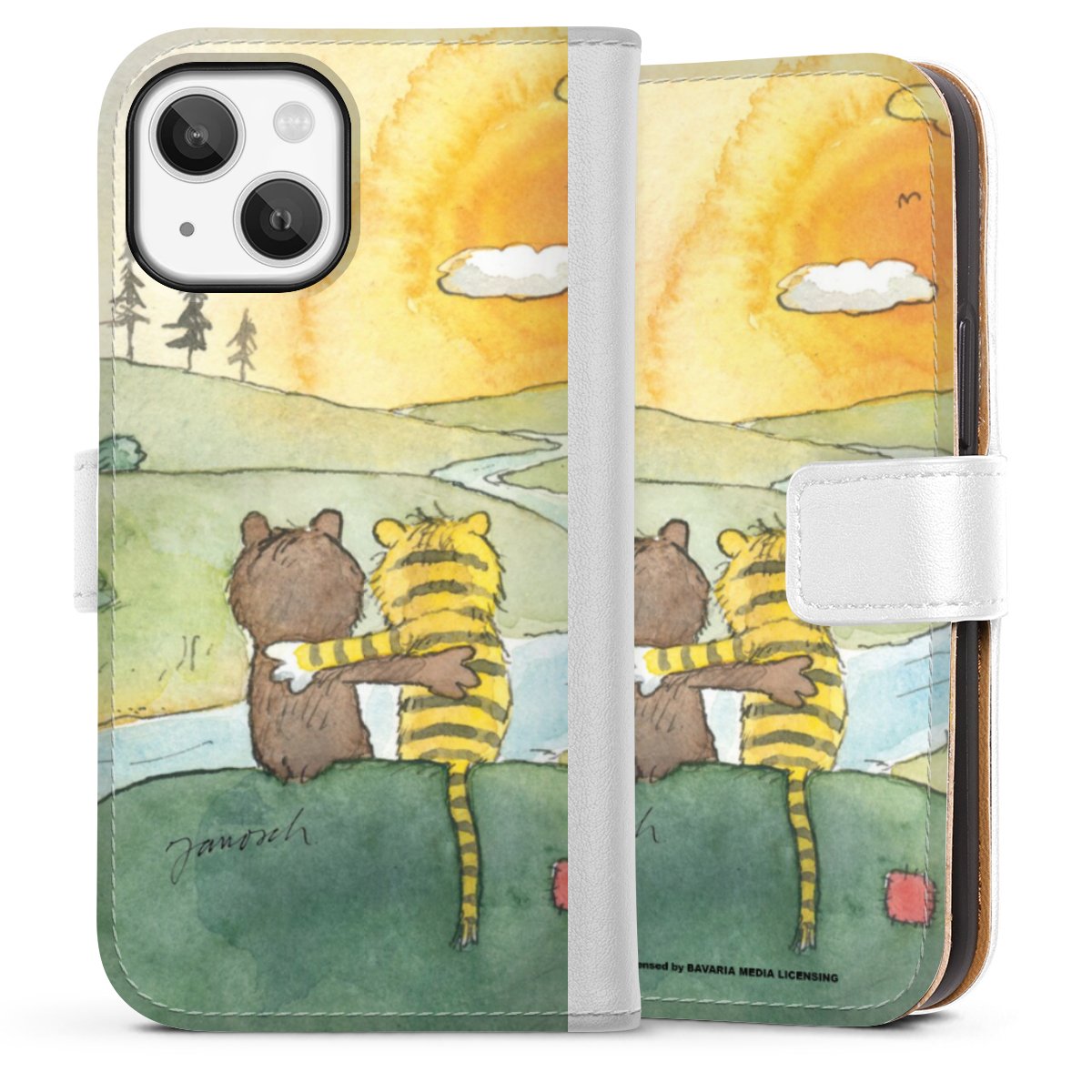 For our Sideflip Case we are using our advanced direct printing technology. The back and frontside are fully printabale, the inside of the phone bag is left unprinted. You can order the phone case without print, printed completely or also with a partial print.