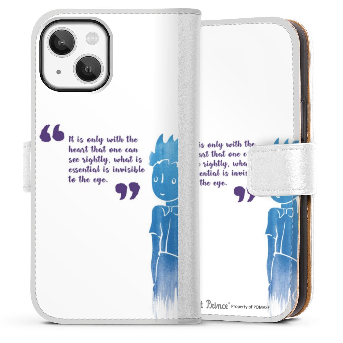 For our Sideflip Case we are using our advanced direct printing technology. The back and frontside are fully printabale, the inside of the phone bag is left unprinted. You can order the phone case without print, printed completely or also with a partial print.