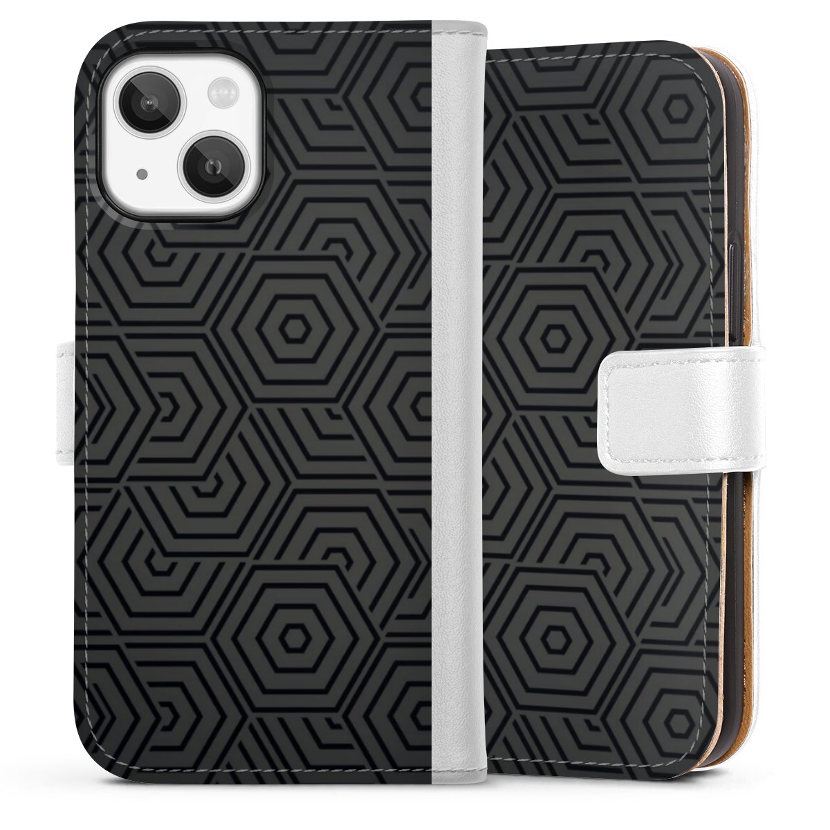 For our Sideflip Case we are using our advanced direct printing technology. The back and frontside are fully printabale, the inside of the phone bag is left unprinted. You can order the phone case without print, printed completely or also with a partial print.