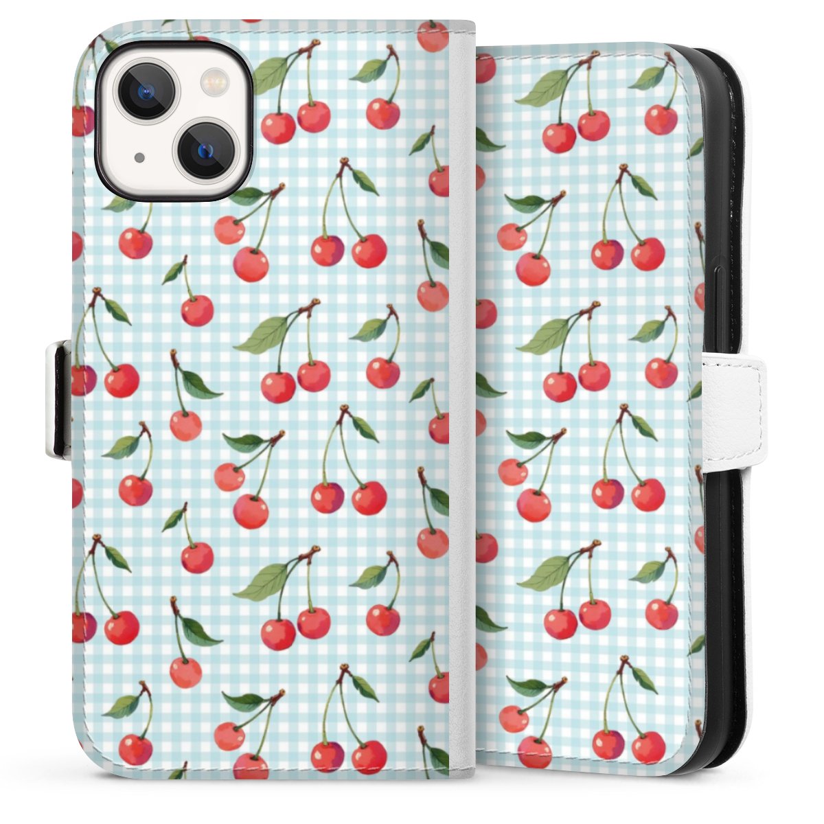 For our Sideflip Case we are using our advanced direct printing technology. The back and frontside are fully printabale, the inside of the phone bag is left unprinted. You can order the phone case without print, printed completely or also with a partial print.