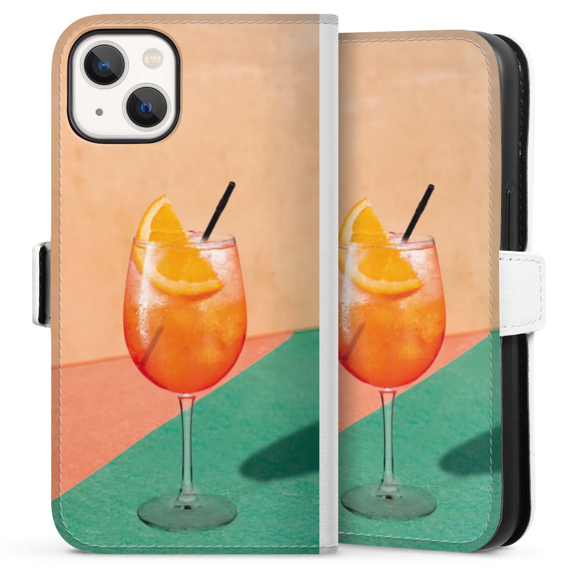 For our Sideflip Case we are using our advanced direct printing technology. The back and frontside are fully printabale, the inside of the phone bag is left unprinted. You can order the phone case without print, printed completely or also with a partial print.