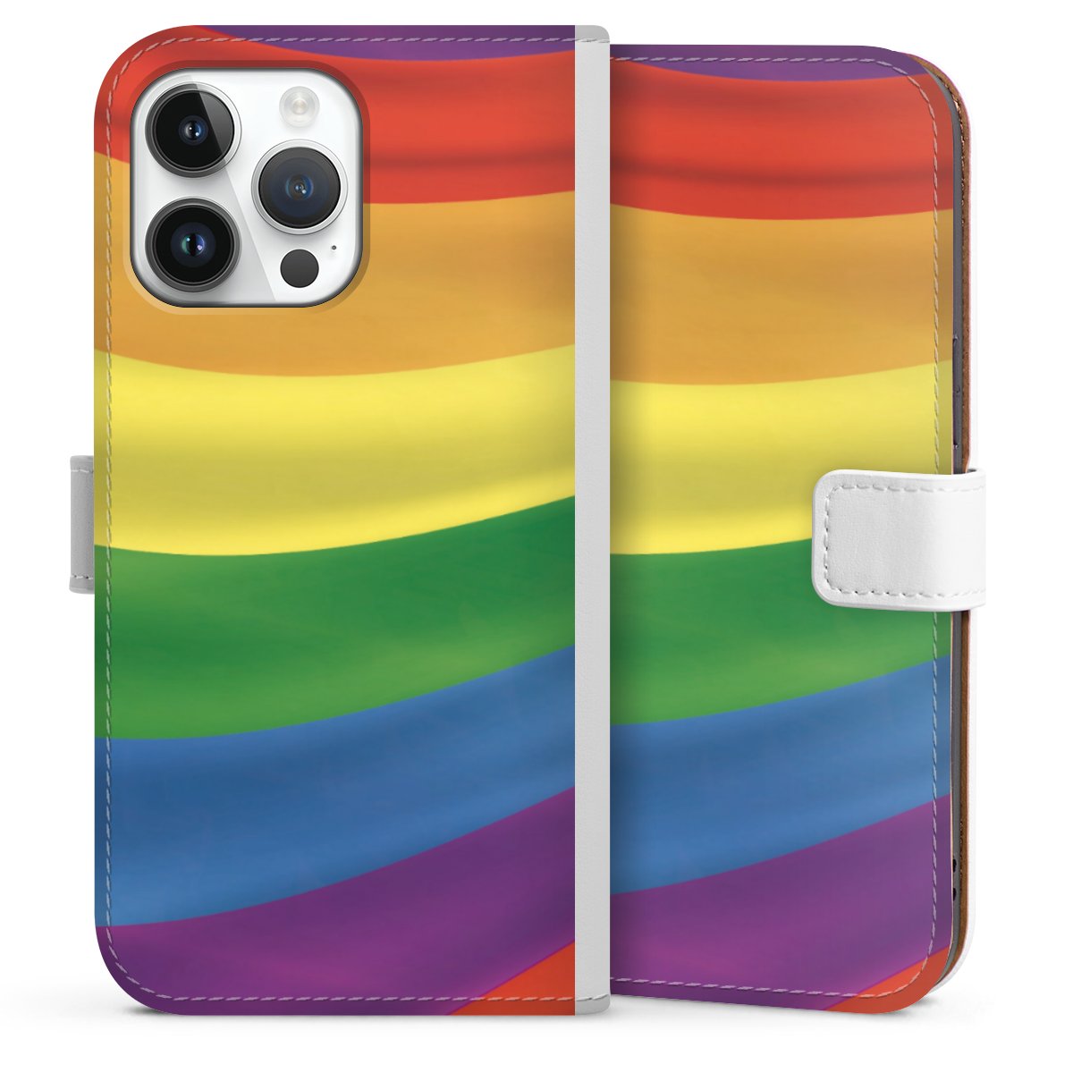 For our Sideflip Case we are using our advanced direct printing technology. The back and frontside are fully printabale, the inside of the phone bag is left unprinted. You can order the phone case without print, printed completely or also with a partial print.