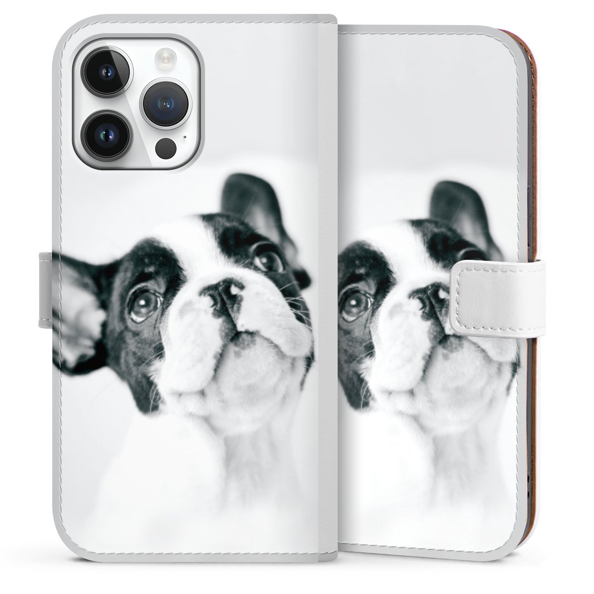 For our Sideflip Case we are using our advanced direct printing technology. The back and frontside are fully printabale, the inside of the phone bag is left unprinted. You can order the phone case without print, printed completely or also with a partial print.