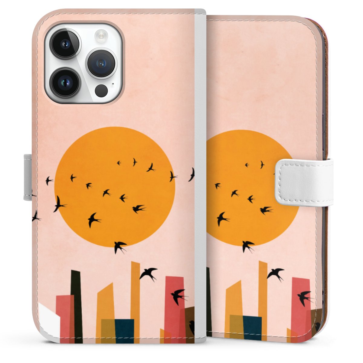For our Sideflip Case we are using our advanced direct printing technology. The back and frontside are fully printabale, the inside of the phone bag is left unprinted. You can order the phone case without print, printed completely or also with a partial print.
