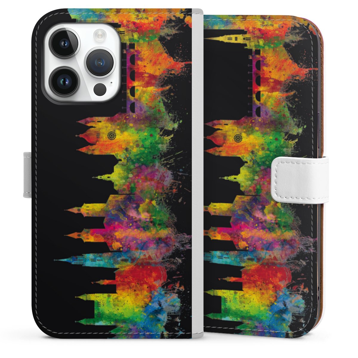 For our Sideflip Case we are using our advanced direct printing technology. The back and frontside are fully printabale, the inside of the phone bag is left unprinted. You can order the phone case without print, printed completely or also with a partial print.
