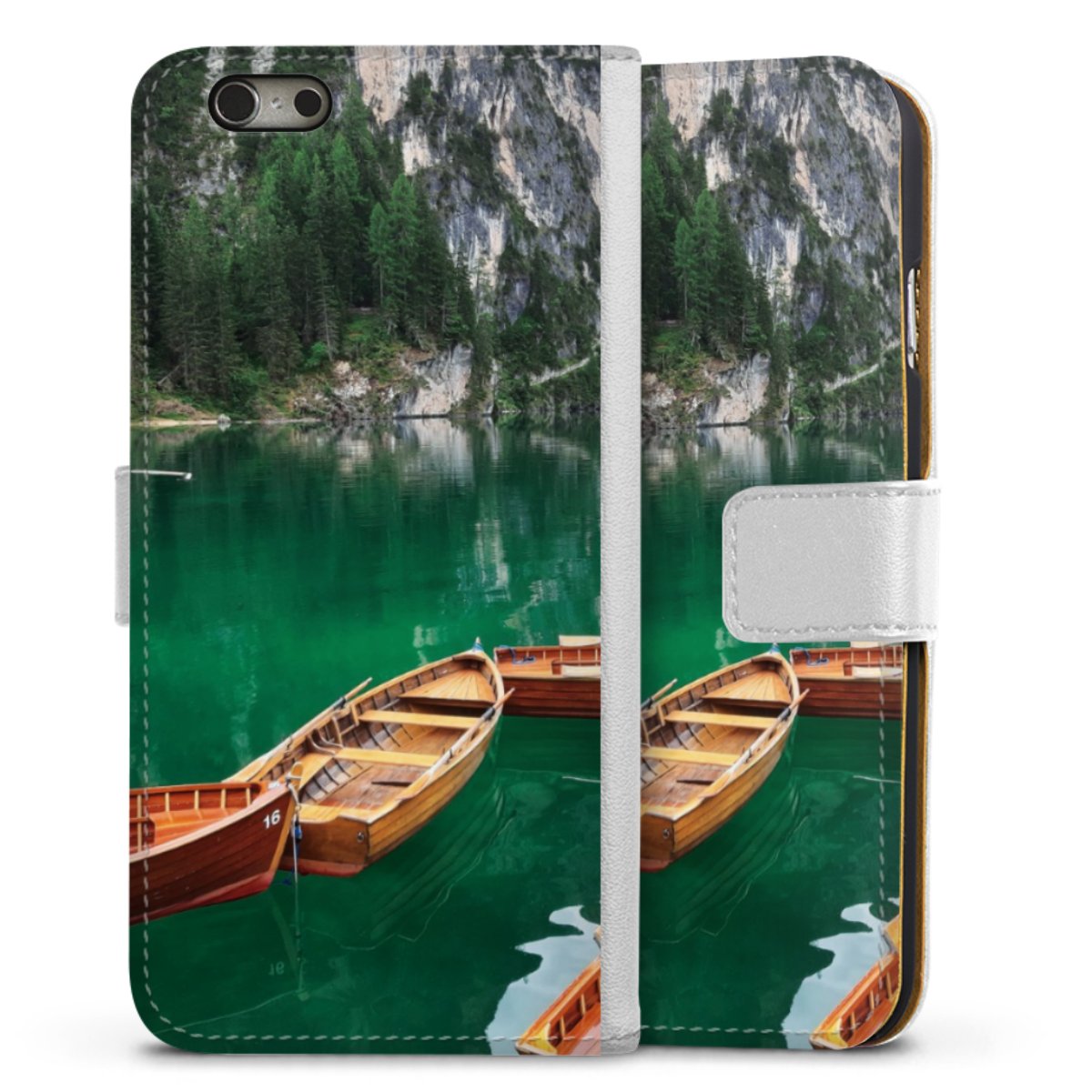 For our Sideflip Case we are using our advanced direct printing technology. The back and frontside are fully printabale, the inside of the phone bag is left unprinted. You can order the phone case without print, printed completely or also with a partial print.