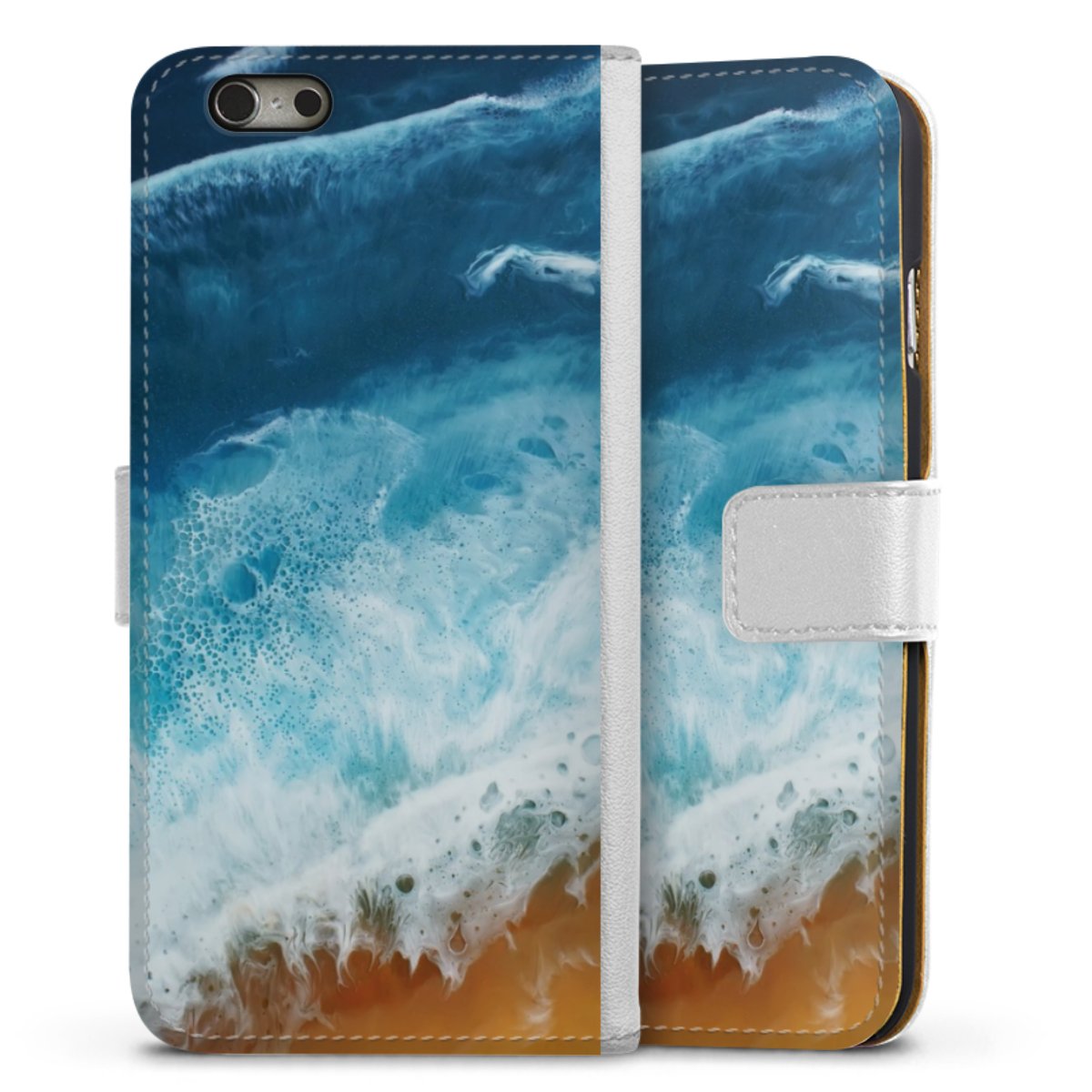 For our Sideflip Case we are using our advanced direct printing technology. The back and frontside are fully printabale, the inside of the phone bag is left unprinted. You can order the phone case without print, printed completely or also with a partial print.