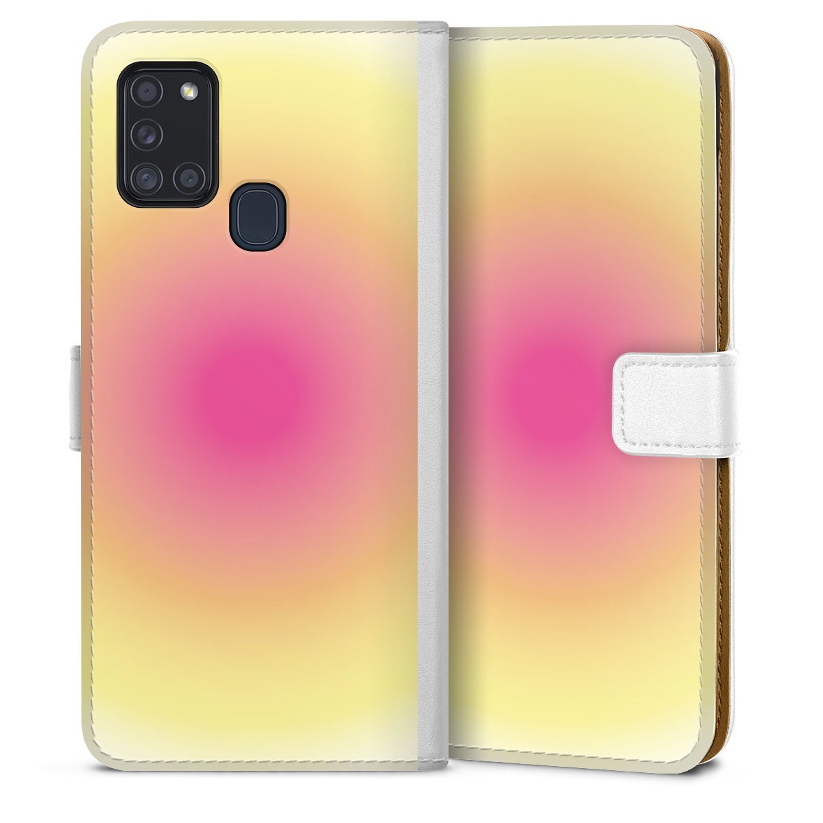 For our Sideflip Case we are using our advanced direct printing technology. The back and frontside are fully printabale, the inside of the phone bag is left unprinted. You can order the phone case without print, printed completely or also with a partial print.