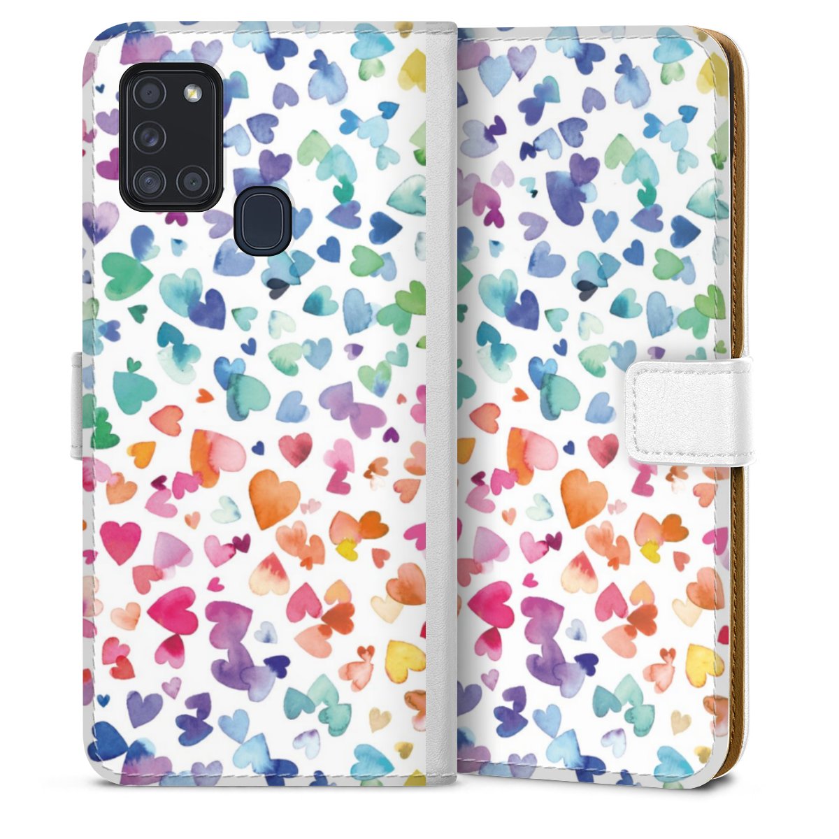 For our Sideflip Case we are using our advanced direct printing technology. The back and frontside are fully printabale, the inside of the phone bag is left unprinted. You can order the phone case without print, printed completely or also with a partial print.