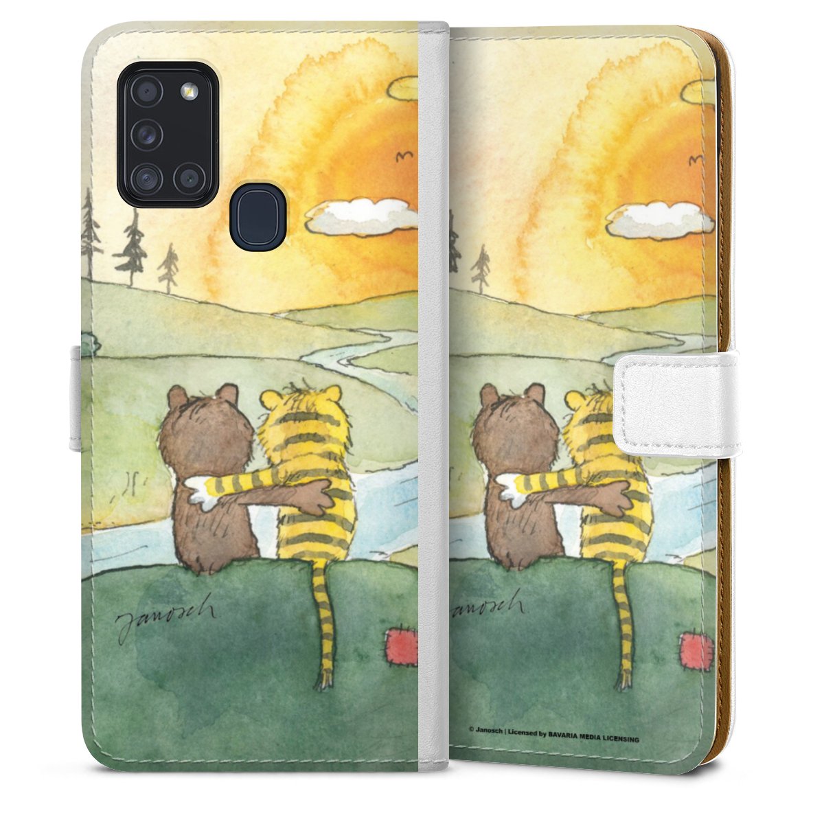 For our Sideflip Case we are using our advanced direct printing technology. The back and frontside are fully printabale, the inside of the phone bag is left unprinted. You can order the phone case without print, printed completely or also with a partial print.