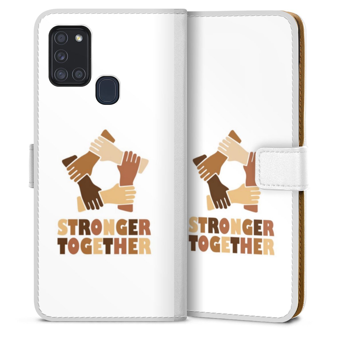 For our Sideflip Case we are using our advanced direct printing technology. The back and frontside are fully printabale, the inside of the phone bag is left unprinted. You can order the phone case without print, printed completely or also with a partial print.