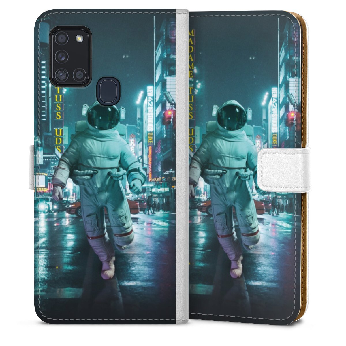 For our Sideflip Case we are using our advanced direct printing technology. The back and frontside are fully printabale, the inside of the phone bag is left unprinted. You can order the phone case without print, printed completely or also with a partial print.