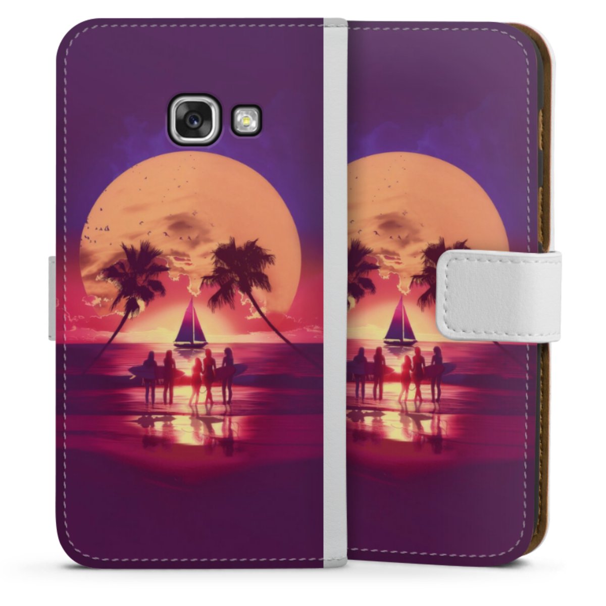 For our Sideflip Case we are using our advanced direct printing technology. The back and frontside are fully printabale, the inside of the phone bag is left unprinted. You can order the phone case without print, printed completely or also with a partial print.