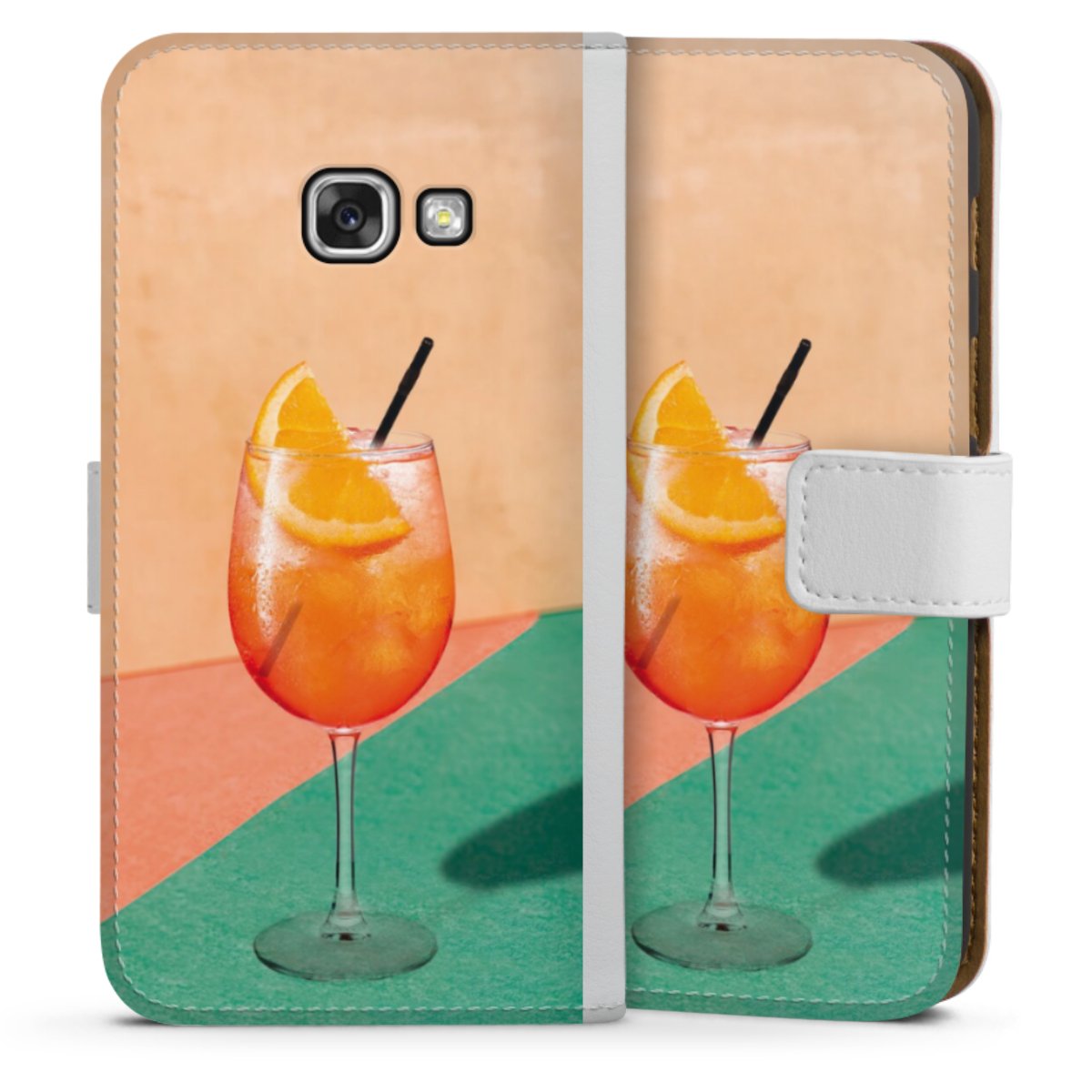 For our Sideflip Case we are using our advanced direct printing technology. The back and frontside are fully printabale, the inside of the phone bag is left unprinted. You can order the phone case without print, printed completely or also with a partial print.