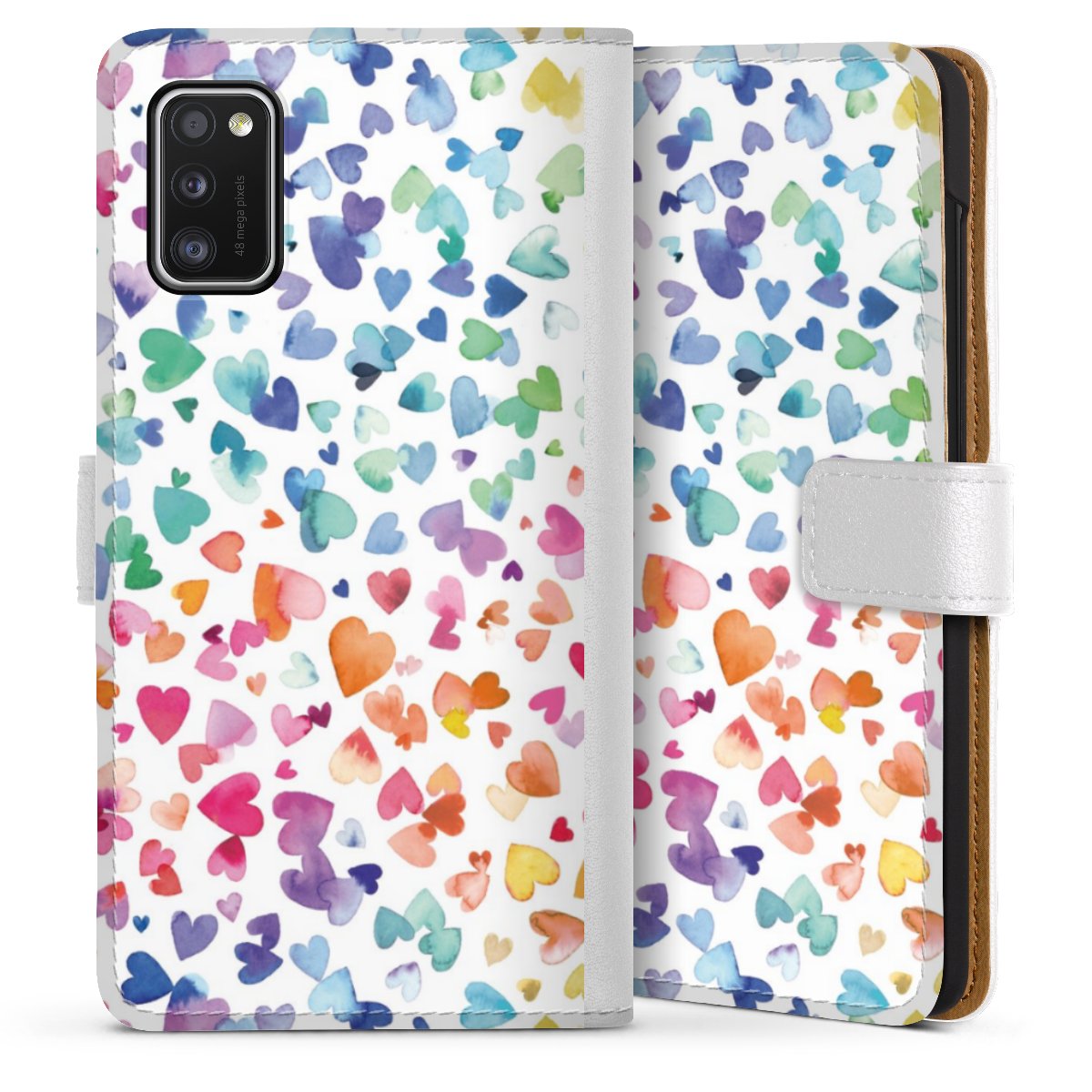 For our Sideflip Case we are using our advanced direct printing technology. The back and frontside are fully printabale, the inside of the phone bag is left unprinted. You can order the phone case without print, printed completely or also with a partial print.