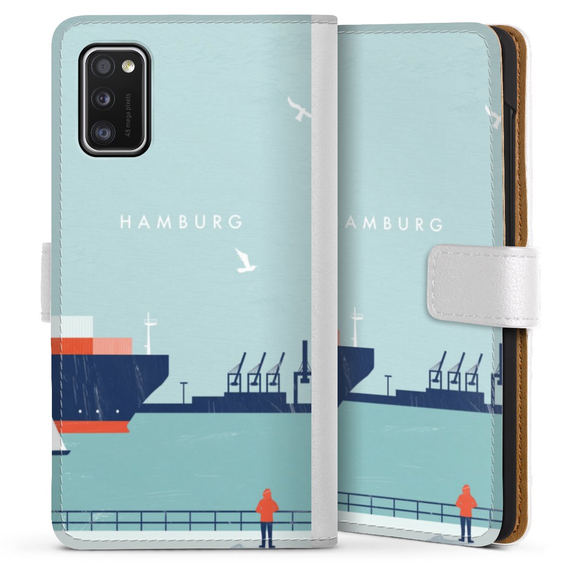 For our Sideflip Case we are using our advanced direct printing technology. The back and frontside are fully printabale, the inside of the phone bag is left unprinted. You can order the phone case without print, printed completely or also with a partial print.