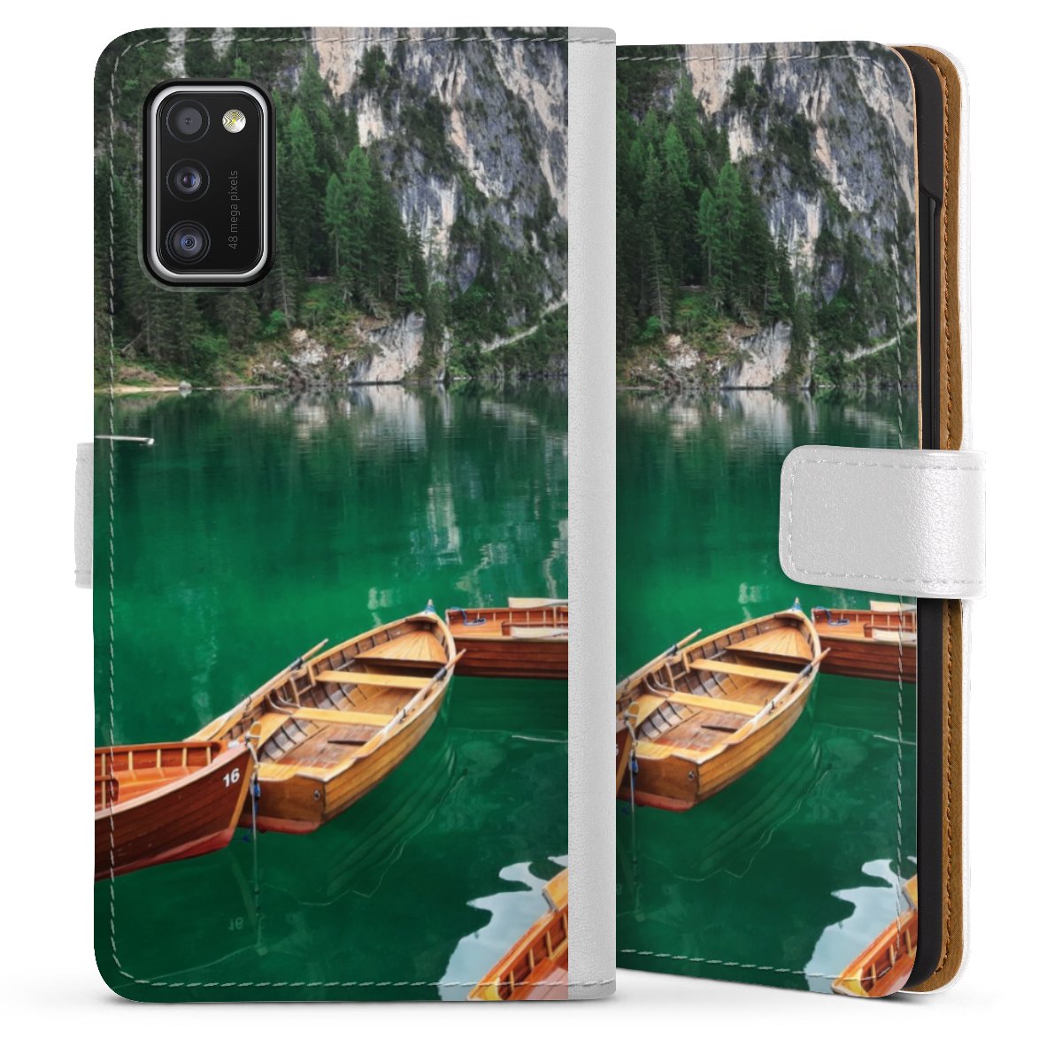For our Sideflip Case we are using our advanced direct printing technology. The back and frontside are fully printabale, the inside of the phone bag is left unprinted. You can order the phone case without print, printed completely or also with a partial print.