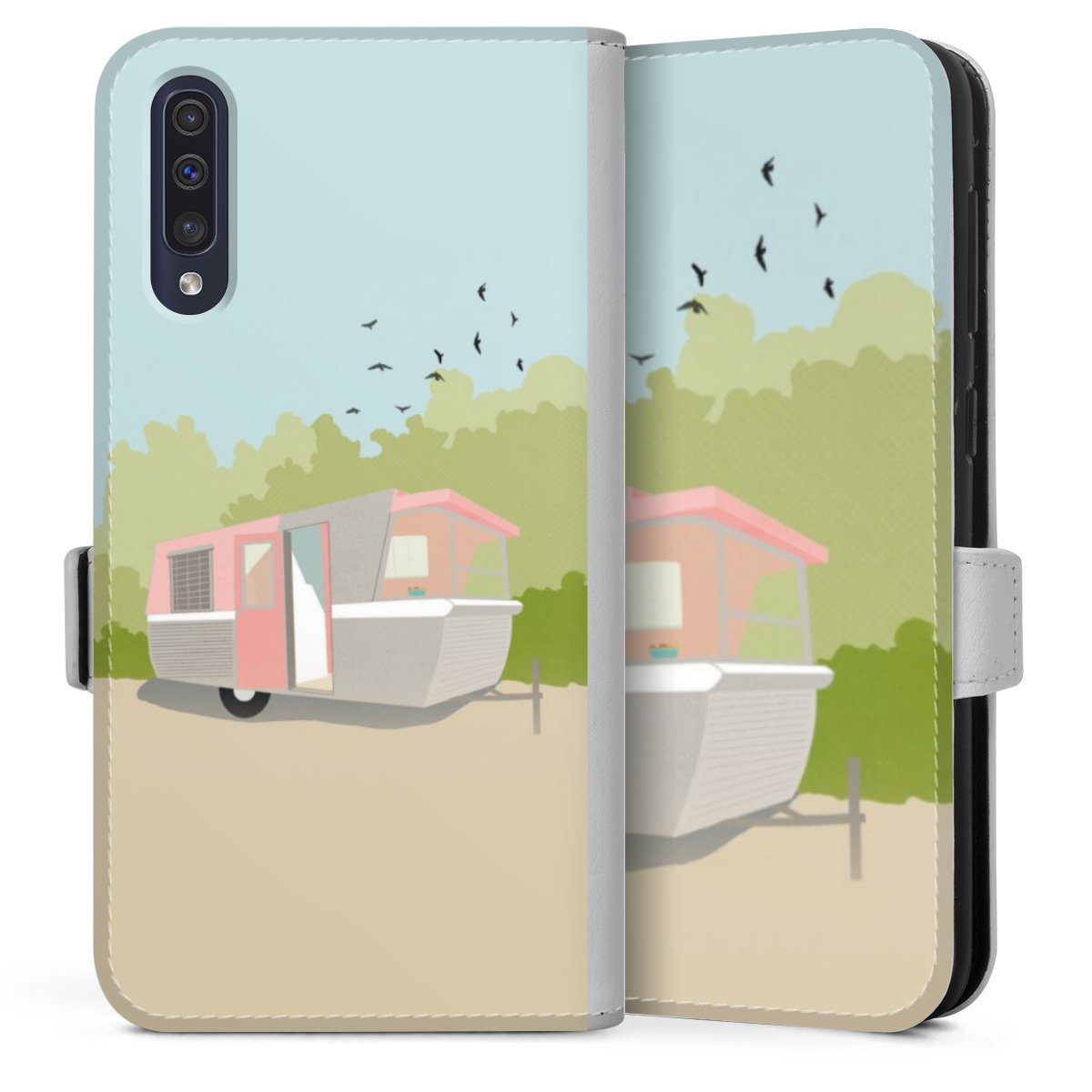 For our Sideflip Case we are using our advanced direct printing technology. The back and frontside are fully printabale, the inside of the phone bag is left unprinted. You can order the phone case without print, printed completely or also with a partial print.