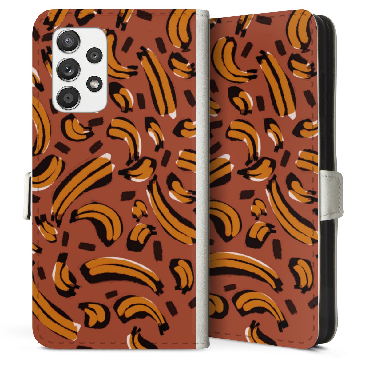 For our Sideflip Case we are using our advanced direct printing technology. The back and frontside are fully printabale, the inside of the phone bag is left unprinted. You can order the phone case without print, printed completely or also with a partial print.