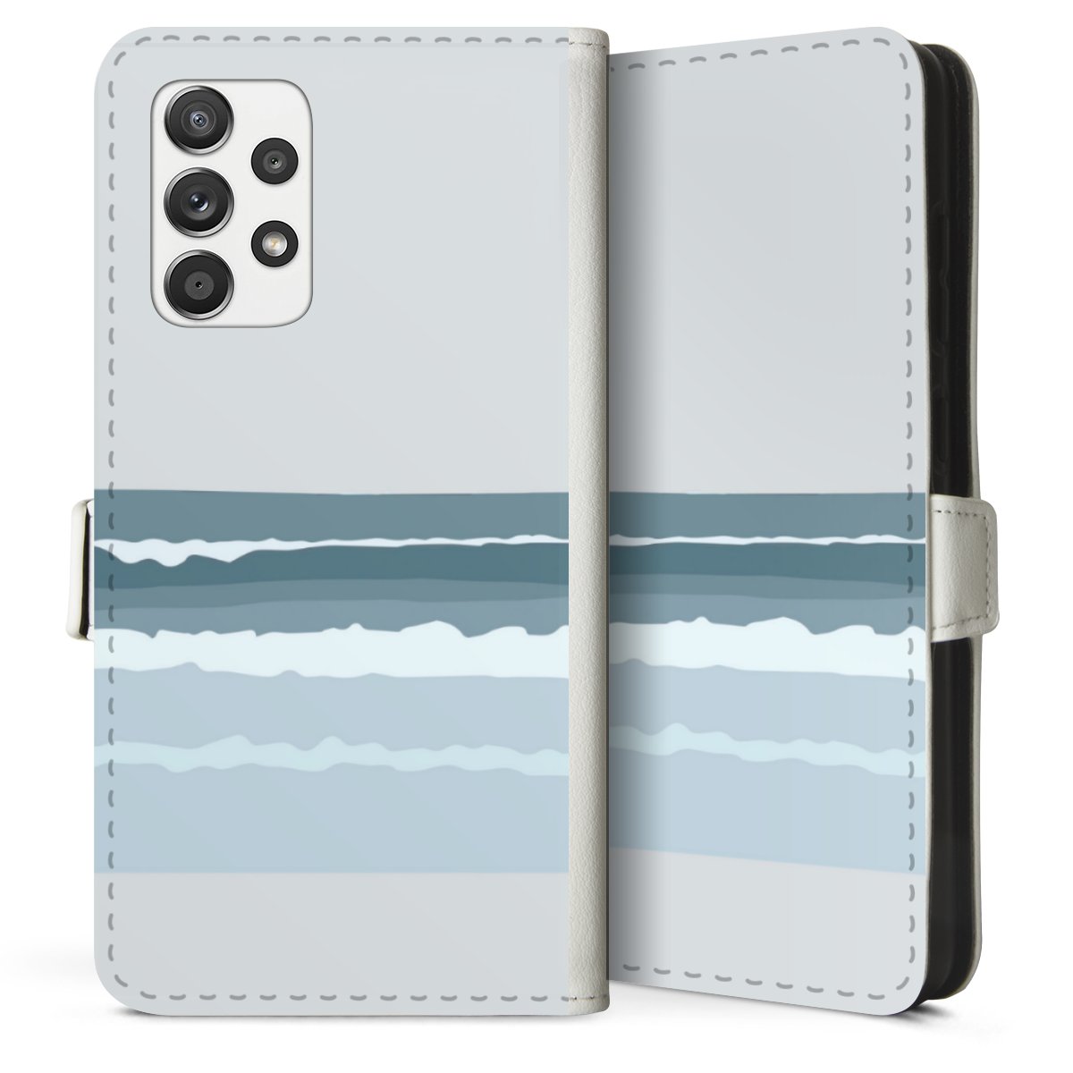 For our Sideflip Case we are using our advanced direct printing technology. The back and frontside are fully printabale, the inside of the phone bag is left unprinted. You can order the phone case without print, printed completely or also with a partial print.