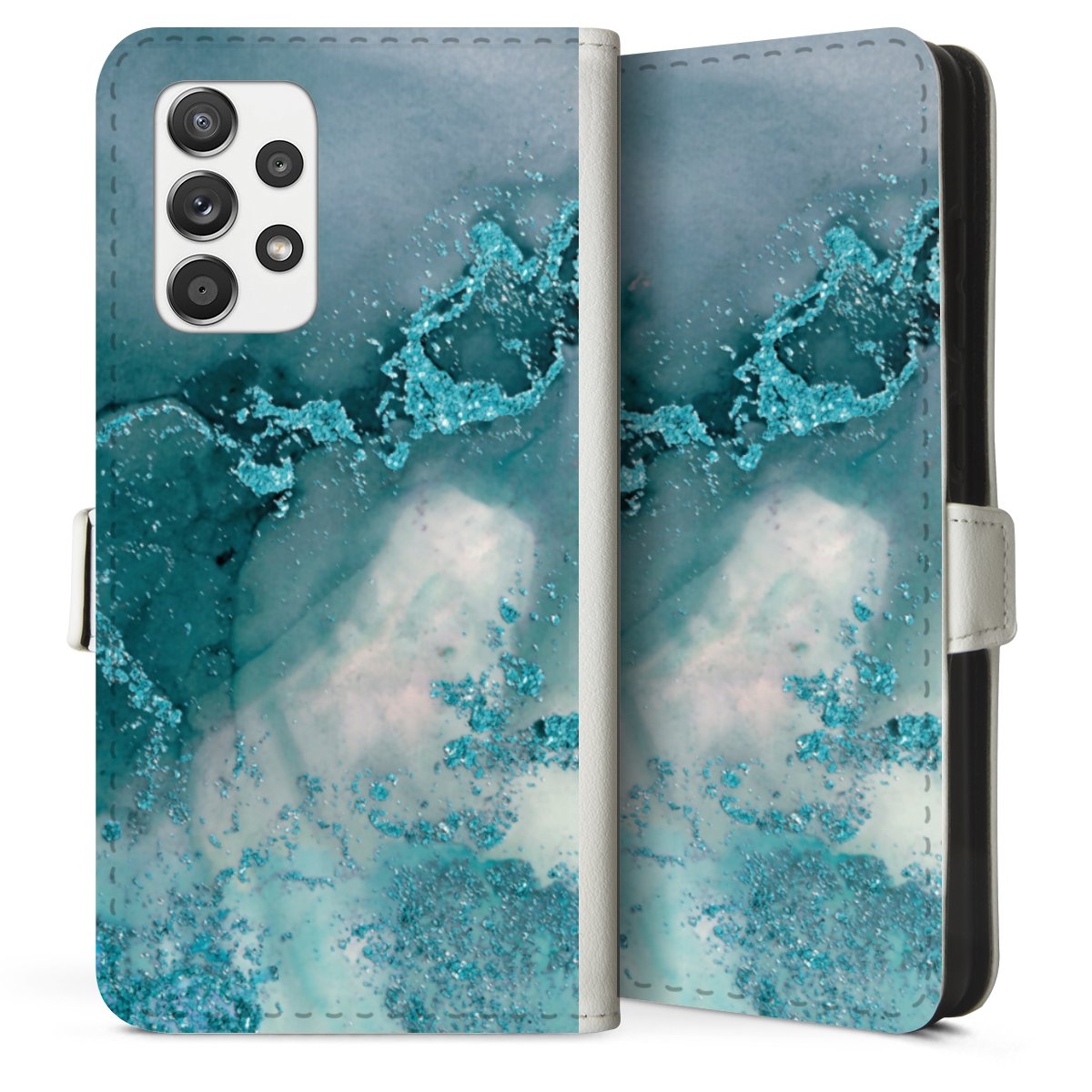 For our Sideflip Case we are using our advanced direct printing technology. The back and frontside are fully printabale, the inside of the phone bag is left unprinted. You can order the phone case without print, printed completely or also with a partial print.