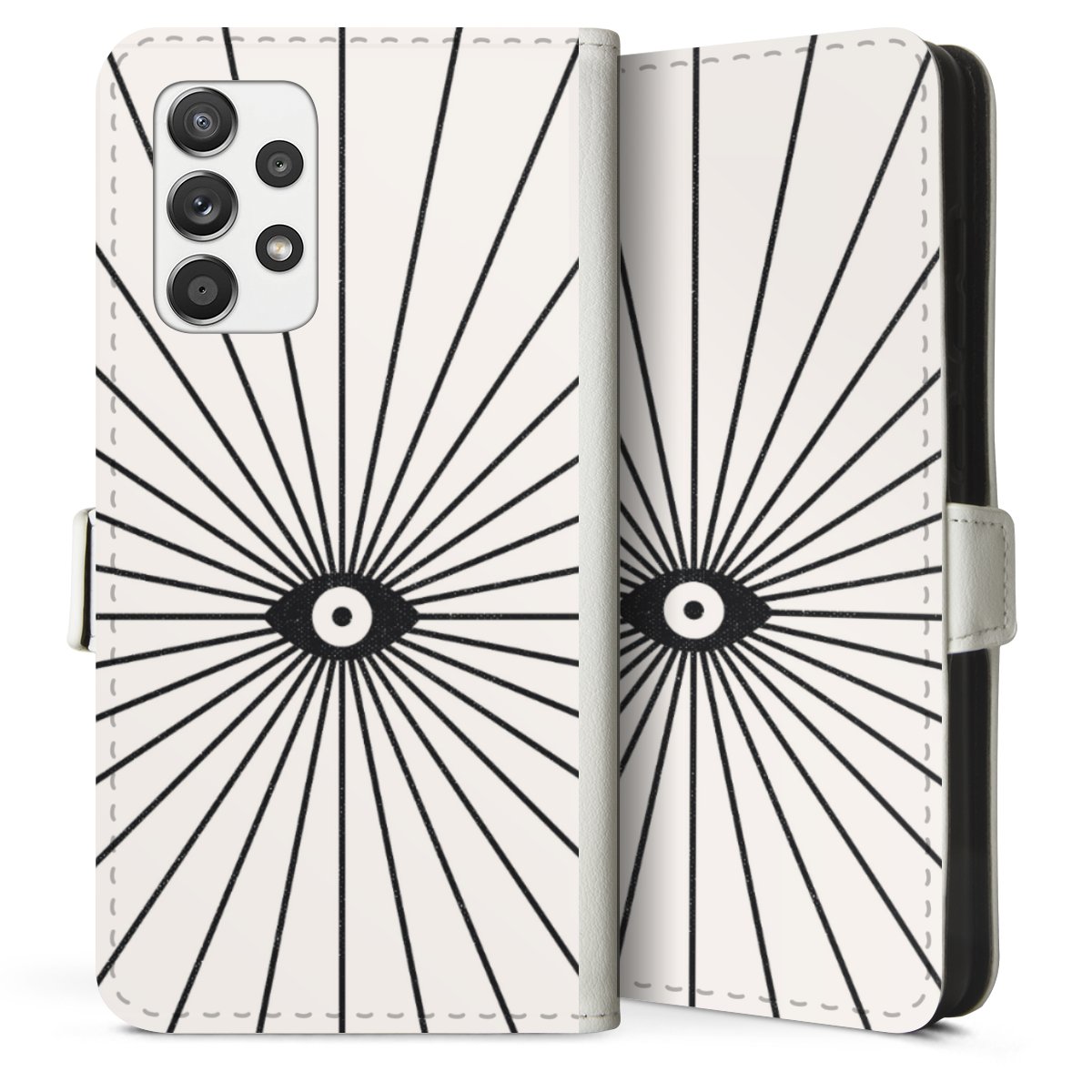 For our Sideflip Case we are using our advanced direct printing technology. The back and frontside are fully printabale, the inside of the phone bag is left unprinted. You can order the phone case without print, printed completely or also with a partial print.
