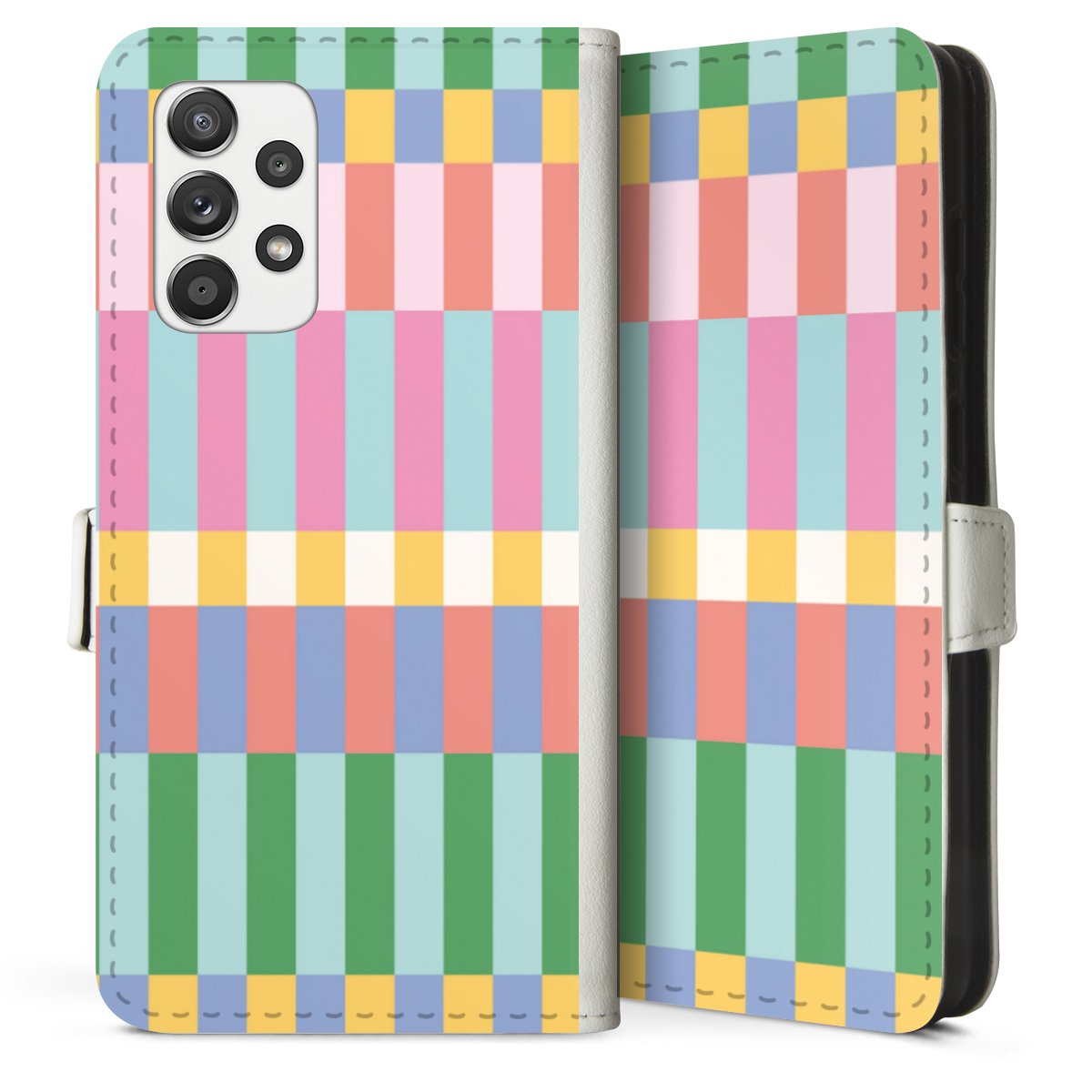 For our Sideflip Case we are using our advanced direct printing technology. The back and frontside are fully printabale, the inside of the phone bag is left unprinted. You can order the phone case without print, printed completely or also with a partial print.