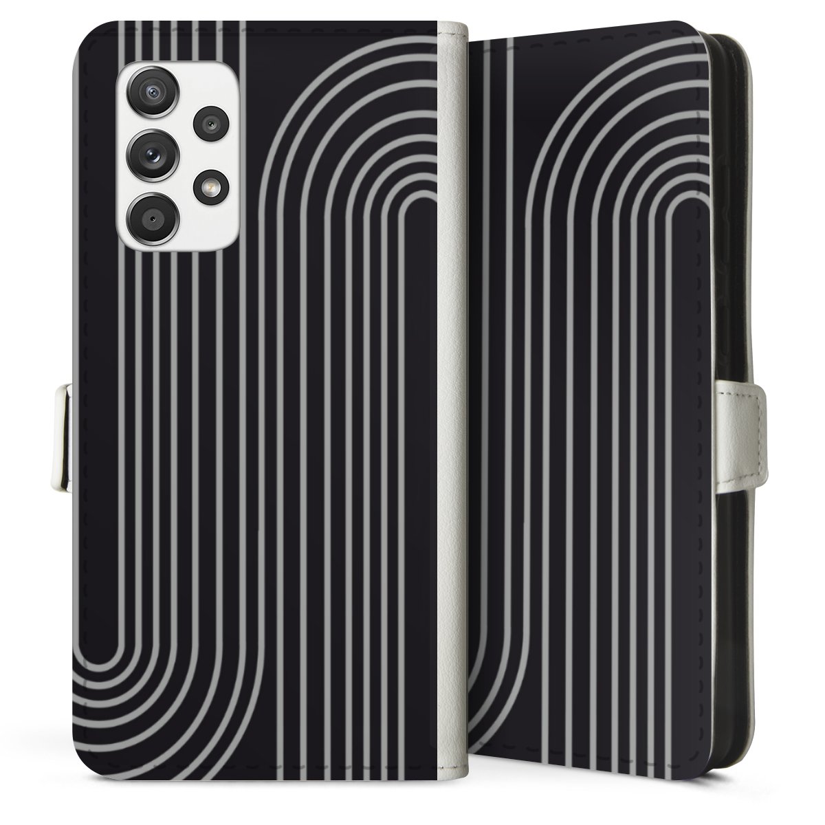 For our Sideflip Case we are using our advanced direct printing technology. The back and frontside are fully printabale, the inside of the phone bag is left unprinted. You can order the phone case without print, printed completely or also with a partial print.