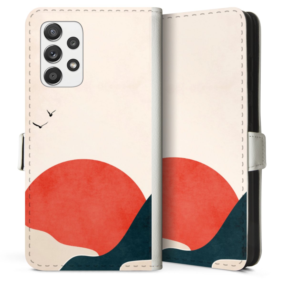 For our Sideflip Case we are using our advanced direct printing technology. The back and frontside are fully printabale, the inside of the phone bag is left unprinted. You can order the phone case without print, printed completely or also with a partial print.