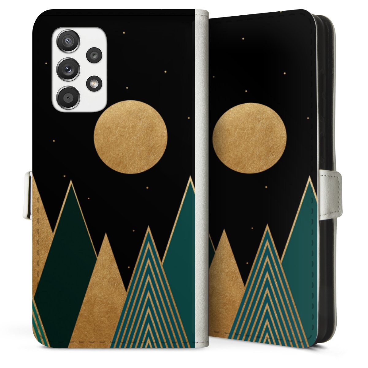 For our Sideflip Case we are using our advanced direct printing technology. The back and frontside are fully printabale, the inside of the phone bag is left unprinted. You can order the phone case without print, printed completely or also with a partial print.