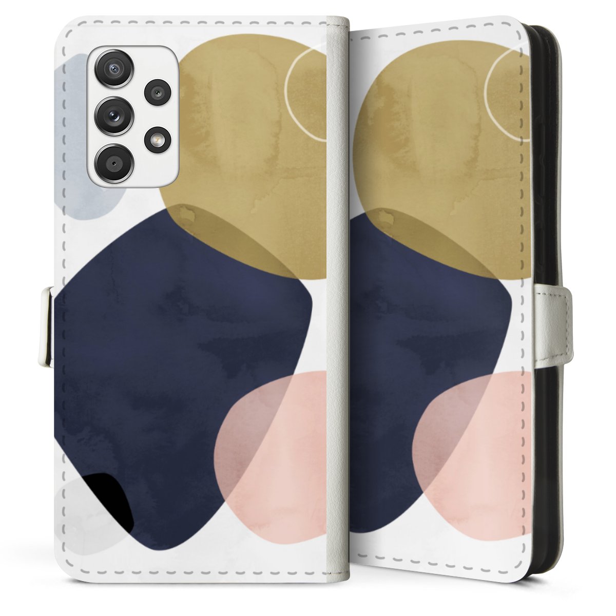 For our Sideflip Case we are using our advanced direct printing technology. The back and frontside are fully printabale, the inside of the phone bag is left unprinted. You can order the phone case without print, printed completely or also with a partial print.