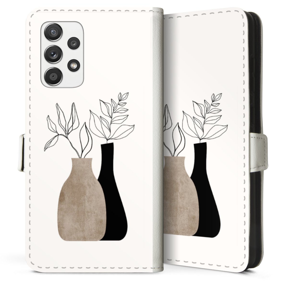 For our Sideflip Case we are using our advanced direct printing technology. The back and frontside are fully printabale, the inside of the phone bag is left unprinted. You can order the phone case without print, printed completely or also with a partial print.