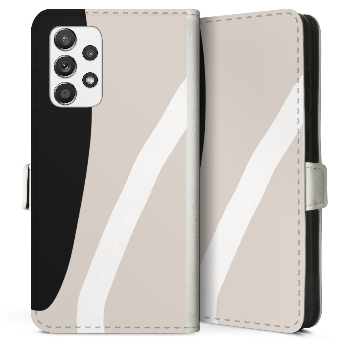 For our Sideflip Case we are using our advanced direct printing technology. The back and frontside are fully printabale, the inside of the phone bag is left unprinted. You can order the phone case without print, printed completely or also with a partial print.